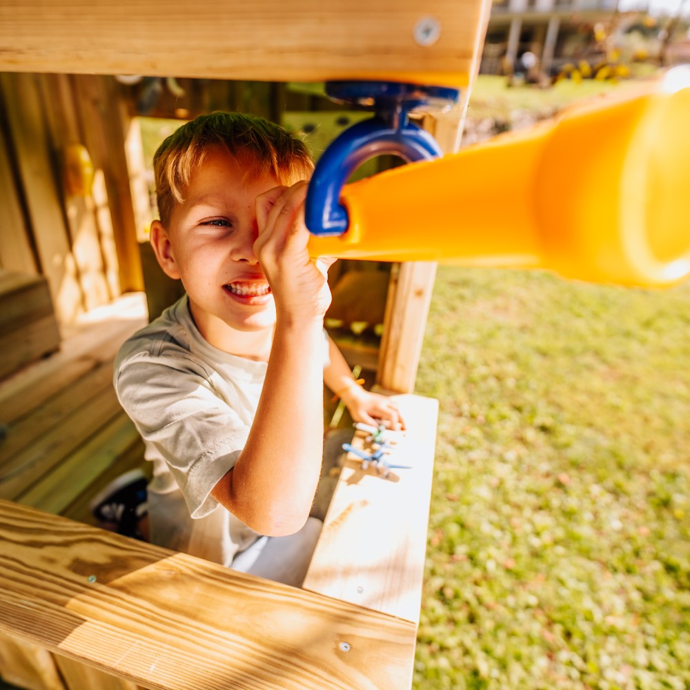 - Hohe Wetterbeständigkeit, wodurch der Spielturm perfekt für den ganzjährigen Einsatz im Freien geeignet ist.